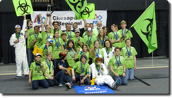In 2015, the students of Biohazard are proving to be unstoppable! The group has grown in strength and numbers, and the members have honed and polished their skills and positions even further. With the 2015 season underway, the team is hard at work crafting its latest robot for the Recycle Rush challenge! We can’t wait to see you at the Greater Pittsburgh Regional Competition and the Chesapeake Regional Competition!
